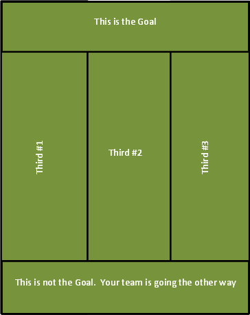 The three dots are all in the same third, bad huck. “But Bruns does the endzone count?” Yes. Yes it counts. Obviously the lines that split the field extend into the endzone, are you kidding me?